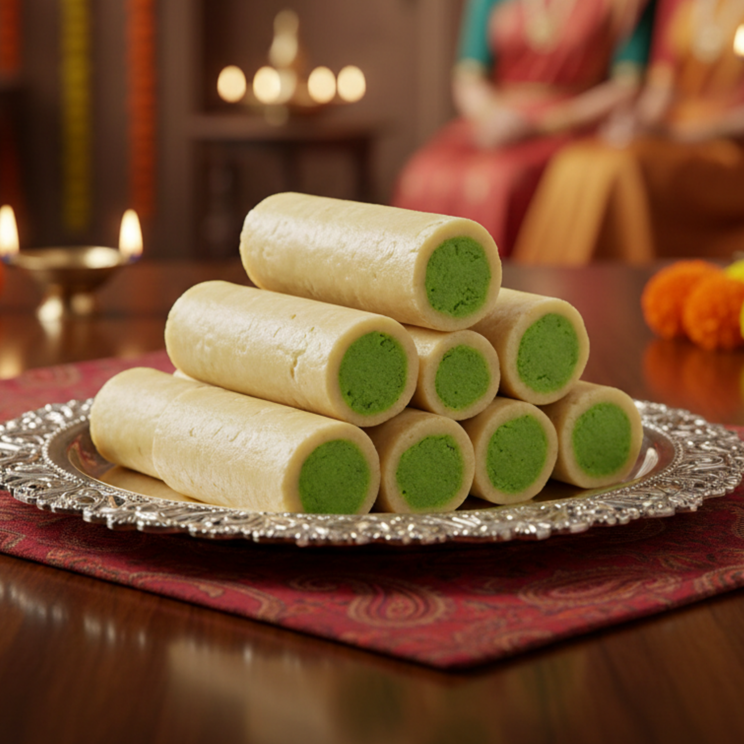 Enjoy the royal taste of Kova Pista Roll from Sai Ram Foods. Crafted using fresh milk kova and filled with finely chopped pistachios, this sweet delivers a perfect balance of creamy richness and nutty crunch. Soft, mildly sweet, and flavorful, Kova Pista Roll is an ideal choice for festivals, celebrations, and gifting. Prepared with care using quality ingredients, it reflects the authentic taste and elegance of traditional Indian sweets.