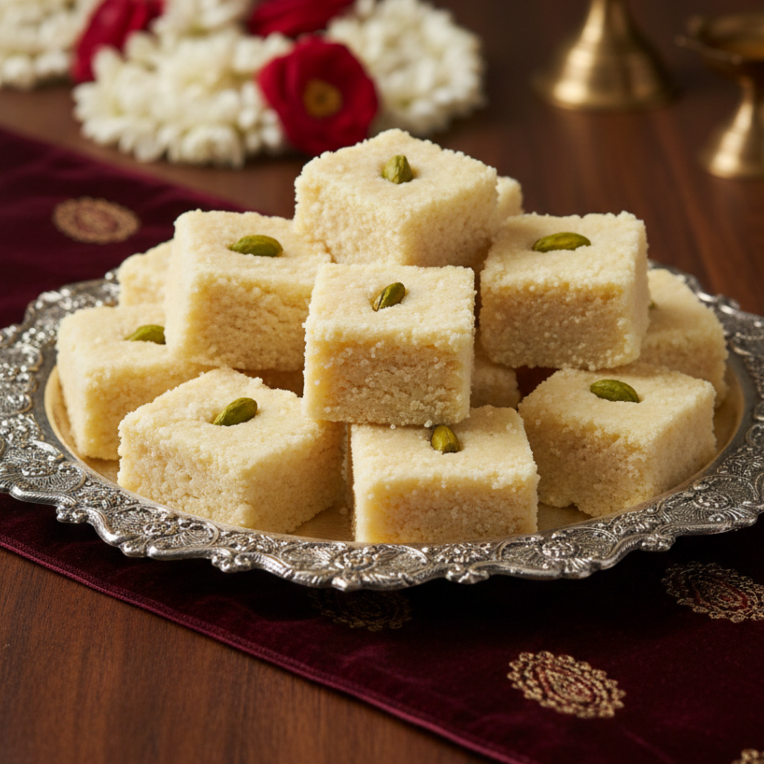 Delight in the rich and authentic taste of Paneer Kalakand from Sai Ram Foods. Prepared using fresh paneer (chenna) and milk solids, this sweet is known for its soft, moist, and grainy texture with perfectly balanced sweetness. Loved for its rich milk flavor and traditional preparation, Paneer Kalakand is ideal for festivals, poojas, celebrations, and gifting. Carefully crafted to ensure freshness and quality, every bite delivers classic homemade sweetness.